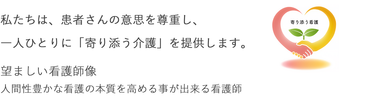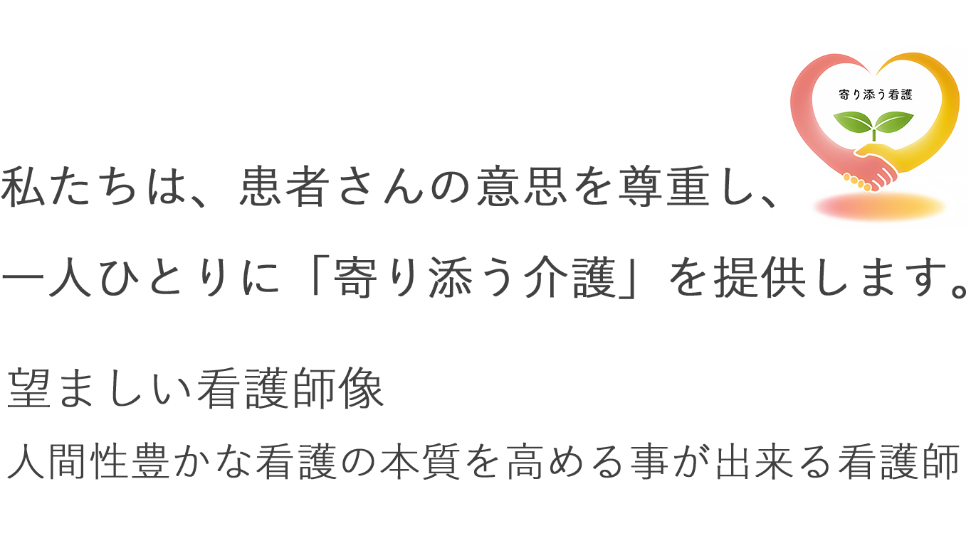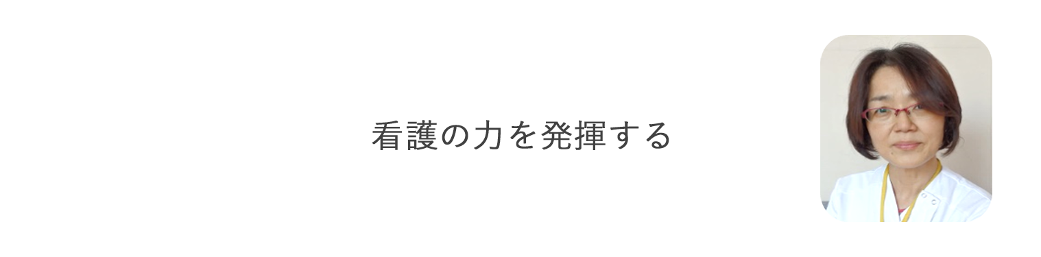 「看護師さん、あなたがいるから安心して入院できる」と思っていただけるような看護提供を目指しています。病む人を支え、あるべきところにつなぐ仕事であり意義深いことです。